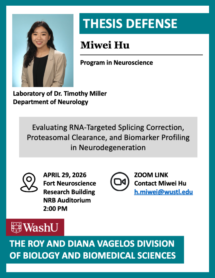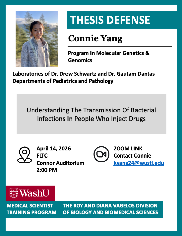 You can find all upcoming Thesis Defense Announcements for the Roy and Diana Vagelos Division of Biology and Biomedical Sciences below. We invite you to join us in celebrating our students as they reach this significant milestone. For more details, please visit our Thesis Exam Calendar page.